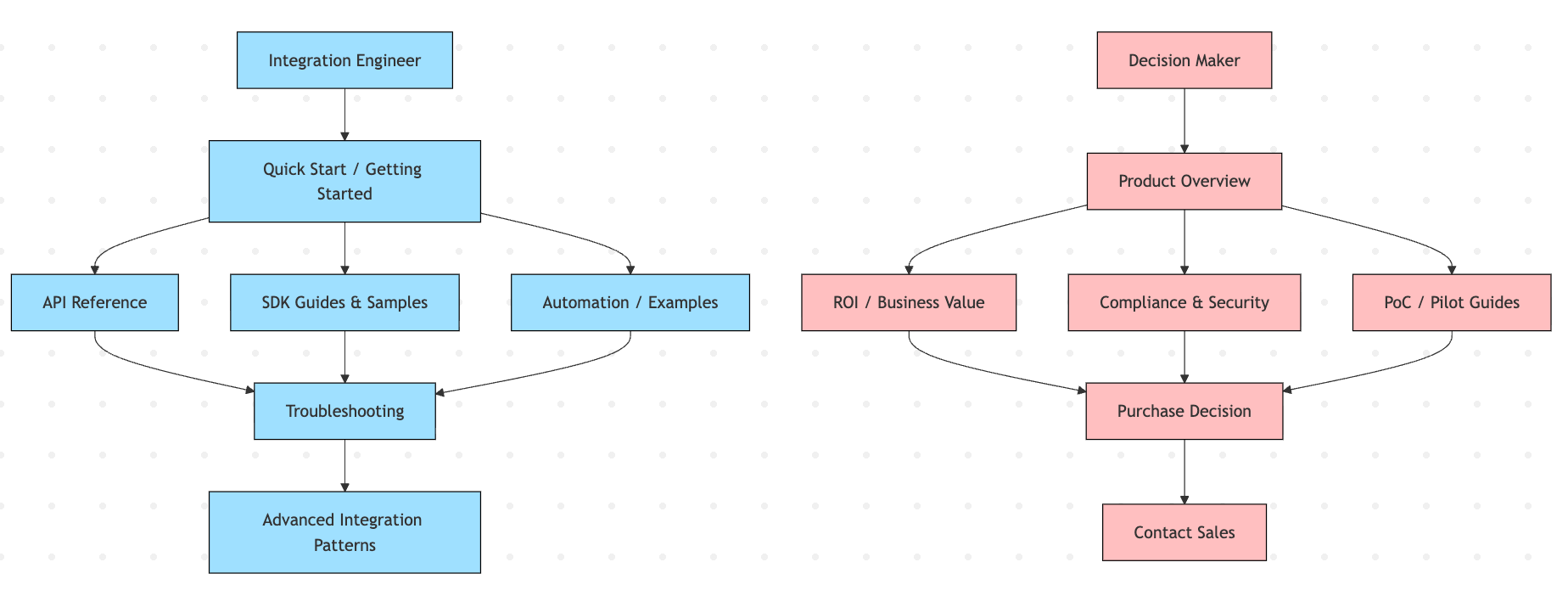 What works for me: start by mapping navigation flows for each persona. Where does a junior developer enter your documentation? What’s their path to first success? What do they need next? Where does a senior architect start, and what questions do they need answered to evaluate your product? Sketch these journeys. Where each audience type enters, what they read, where they go when they’re stuck.